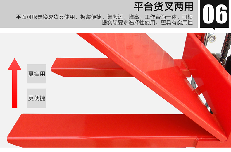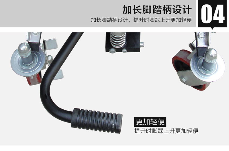 ? 輕型設計,回轉半徑小,操作輕巧靈活,提升時踩動腳踏柄,降低時逆時針