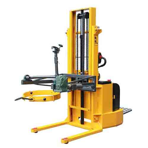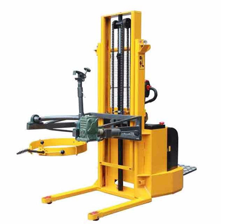 ? 全電動油桶翻轉車采用電動驅動、抱箍叼口組合式、電動升高、電動翻轉方式。
