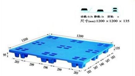 單面塑料托盤只能一面使用,表面有網(wǎng)格狀和平板狀兩種,底部有川字型、田字型、九腳型。