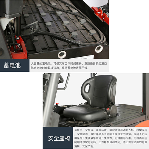 舒適的配置輕松的作業(yè) 腳制動(dòng)采用懸掛系統(tǒng),增加腳下操作空間及腳下操作舒適性,駕駛員操作更舒適省力; 腳踏式駐車制動(dòng)系統(tǒng),無(wú)需改變坐姿,只要用腳輕輕一踩即能實(shí)現(xiàn)停車制動(dòng)??捎行p輕司機(jī)疲勞強(qiáng)度。右置式液壓操作手柄,符合人機(jī)工程,大幅提高司機(jī)操作舒適性; 低噪音低振動(dòng)設(shè)計(jì),創(chuàng)造安靜的作業(yè)環(huán)境 電機(jī)、電瓶等多個(gè)部位增加緩沖裝置,以及優(yōu)化的車體框架結(jié)構(gòu),降低整機(jī)的振動(dòng); 負(fù)荷傳感轉(zhuǎn)向器與低噪音泵配合使用,整車噪音更低 。貨叉在接觸地面之前的瞬間,下降速度會(huì)自動(dòng)放慢;緩和地接觸地面,大幅降低碰撞噪音。 后橋采用柔性減震系統(tǒng),有效過(guò)濾路面雜波,使得駕駛員舒適程度提高。 高效節(jié)能 整機(jī)標(biāo)配置LED燈,燈光節(jié)能80%以上; 多種速度模式選擇功能,標(biāo)準(zhǔn)配置直流電壓變換器均衡使用蓄電池,延長(zhǎng)蓄電池使用壽命 ;匹配電動(dòng)專用花紋輪胎,行駛節(jié)能10%以上(選配) 交流動(dòng)力系統(tǒng)效率高、保護(hù)功能齊全,自帶速度傳感、溫度傳感器,可靠性和壽命大大提高 |