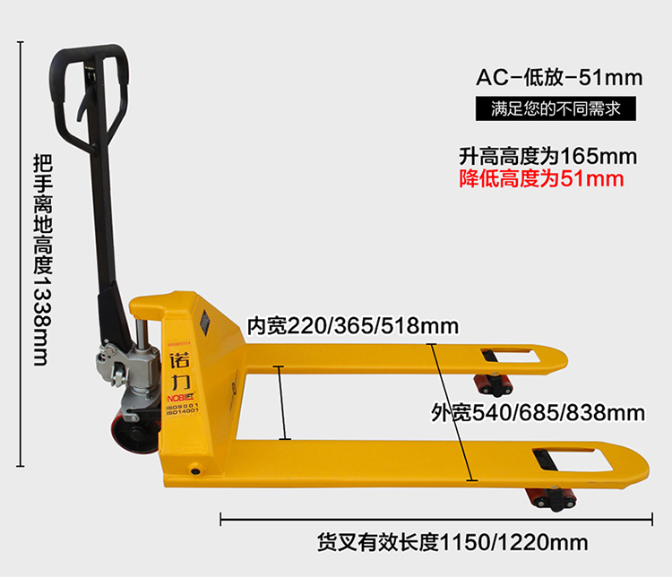 ? 諾力AC-LOW低放型手動(dòng)搬運(yùn)車,托盤叉口離地高度小于51(35)mm的