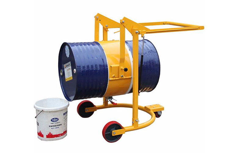 ? 夾緊:將油桶立在平地,把搬運(yùn)車(chē)夾緊包匝圈緊靠到油桶。