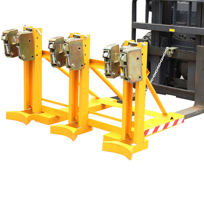 ? 純機(jī)械結(jié)構(gòu)設(shè)計(jì)的輕型雙鷹嘴三油桶夾具可與叉車方便地配合,僅依靠叉車的