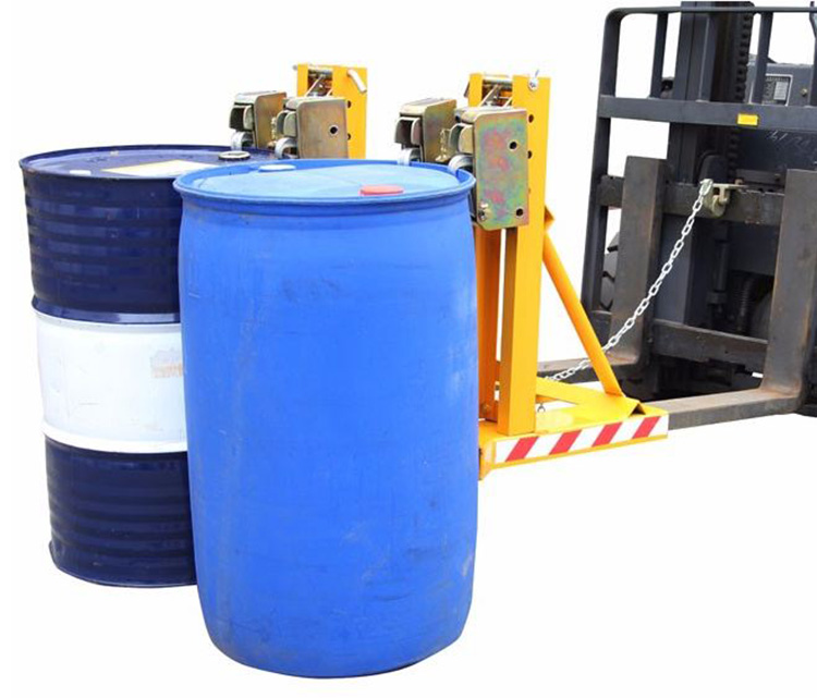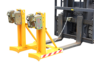 ? 與貨叉連接配有自鎖裝置確保油桶夾在坡度上和顛簸路面使用時不會滑落。