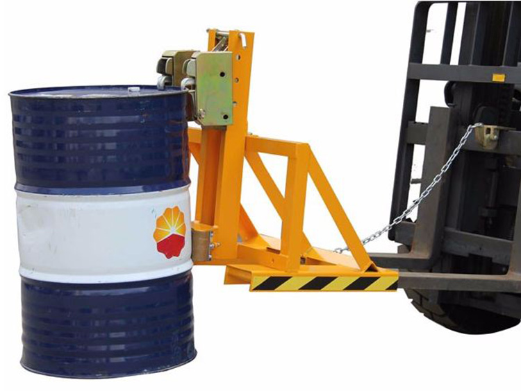 ? 與貨叉連接配有自鎖裝置確保油桶夾在坡度上和顛簸路面使用時不會滑落。
