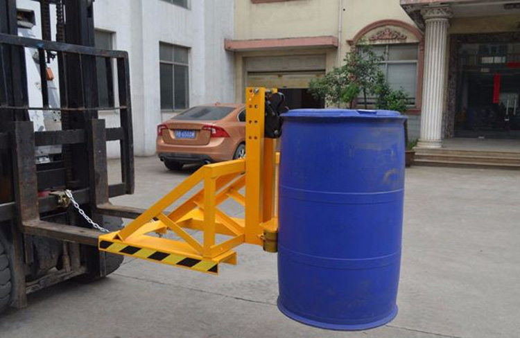 ? 與貨叉連接配有自鎖裝置確保油桶夾在坡度上和顛簸路面使用時(shí)不會(huì)滑落。