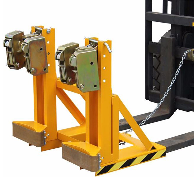 ? 與貨叉連接配有自鎖裝置確保油桶夾在坡度上和顛簸路面使用時不會滑落。