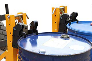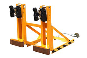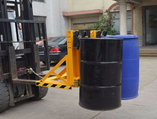 ? 與貨叉連接配有安全鏈連接或自鎖裝置確保油桶夾在坡度上和顛簸路面使用時(shí)不會(huì)滑落。