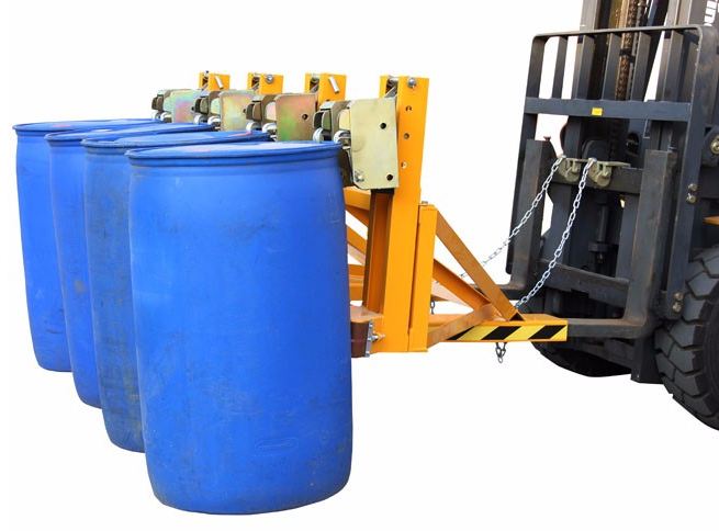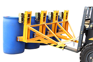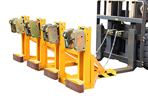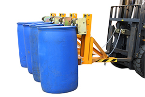 ? 與貨叉連接配有自鎖裝置確保油桶夾在坡度上和顛簸路面使用時(shí)不會滑落。