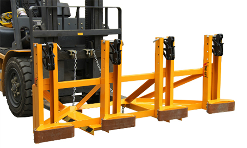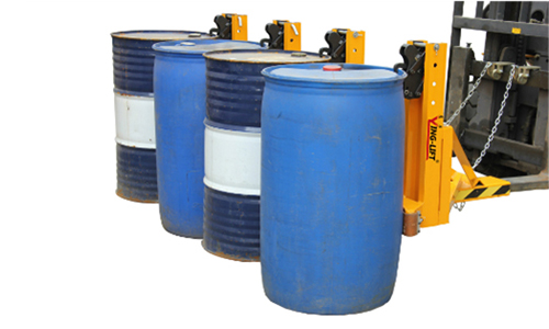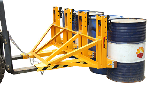 ? 與貨叉連接配有自鎖裝置確保油桶夾在坡度上和顛簸路面使用時(shí)不會滑落。