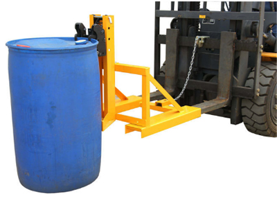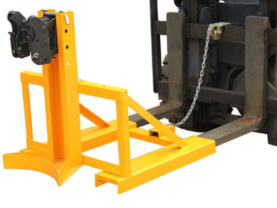 ? 與貨叉連接配有自鎖裝置確保油桶夾在坡度上和顛簸路面使用時不會滑落。