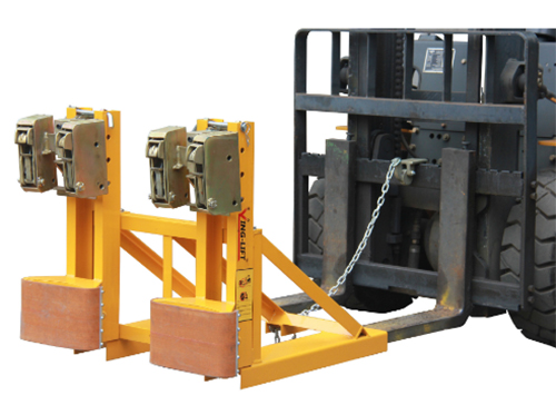 ? 與貨叉連接配有自鎖裝置確保油桶夾在坡度上和顛簸路面使用時(shí)不會滑落。