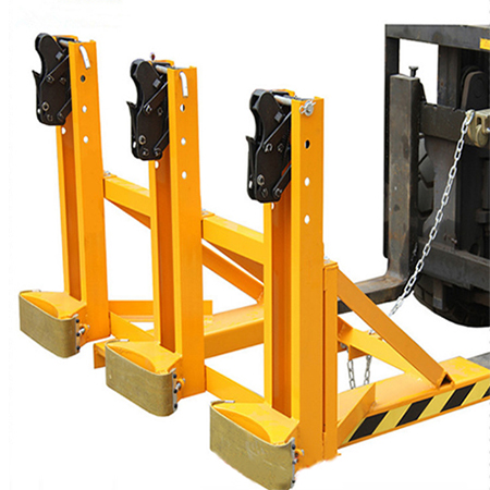 ? 與貨叉連接配有自鎖裝置確保油桶夾在坡度上和顛簸路面使用時(shí)不會(huì)滑落。