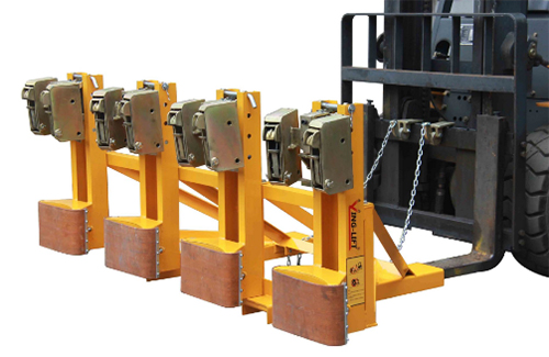 ? 與貨叉連接配有自鎖裝置確保油桶夾在坡度上和顛簸路面使用時不會滑落。