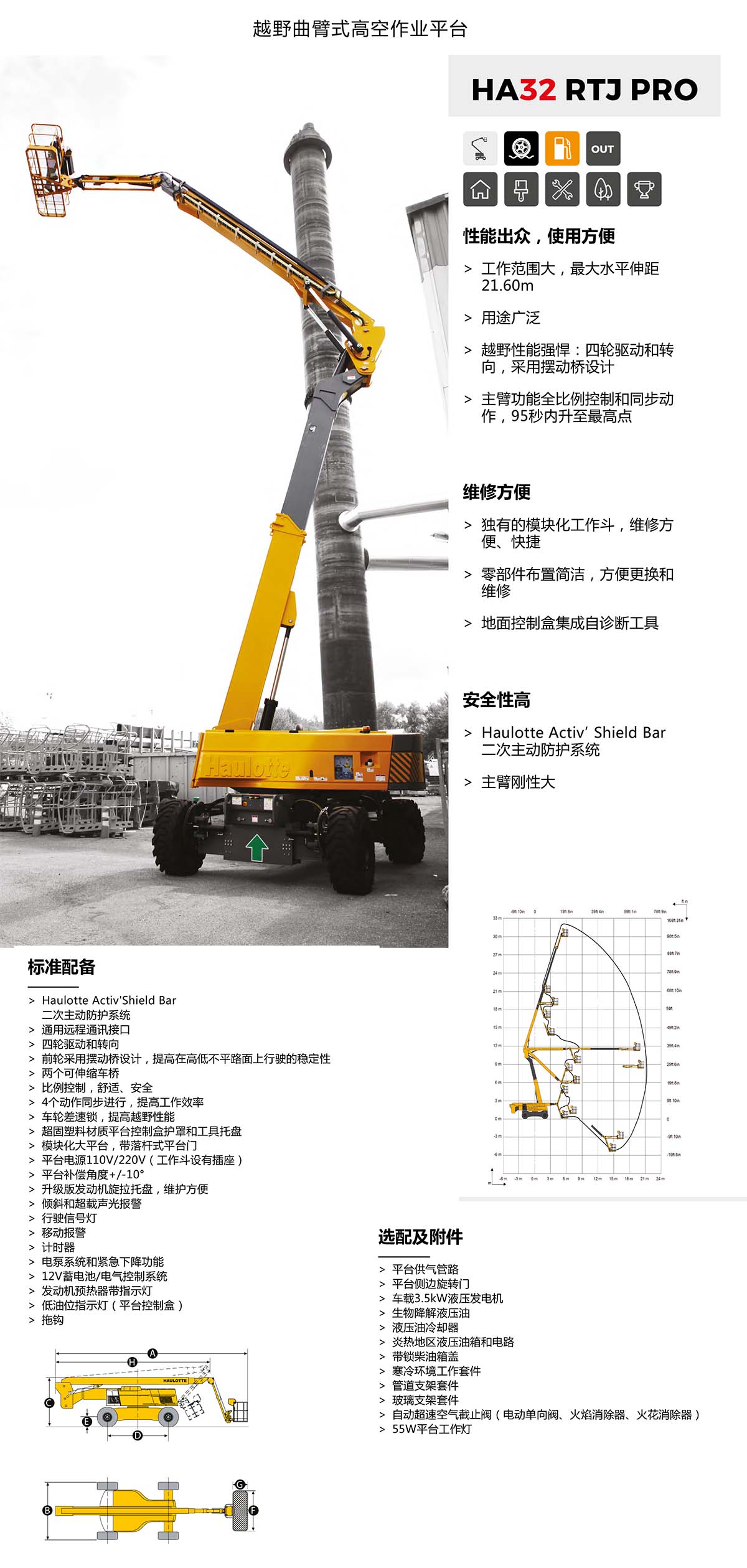 》作業(yè)范圍不受限時(shí)的水平延伸距離最大21.6米,性能出眾,操作方便