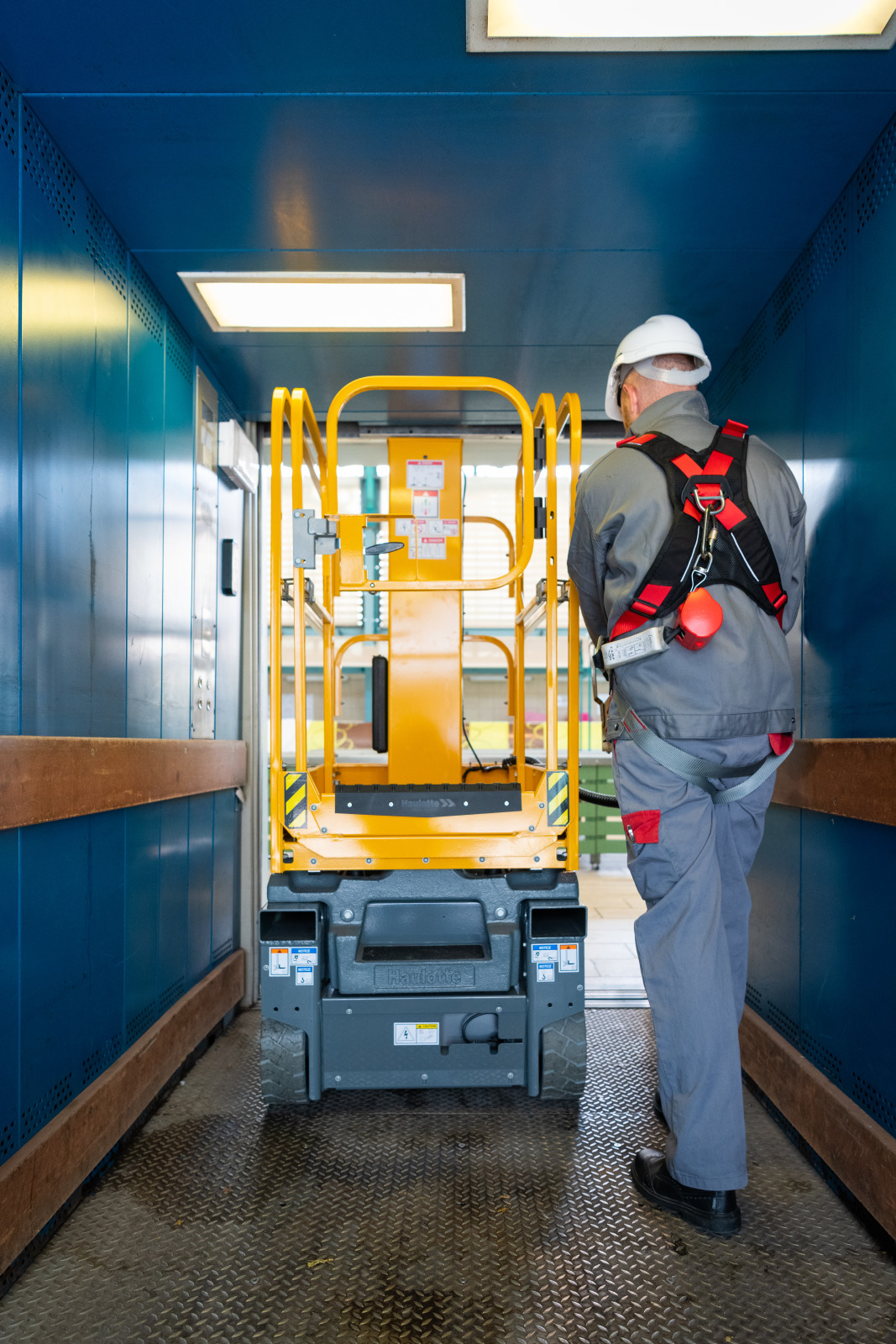 》平臺(tái)設(shè)有專用防滑臺(tái)階,進(jìn)出方便,平臺(tái)控制盒設(shè)計(jì)直觀易懂