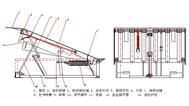 ? 平臺操作極其簡單,提起抬板拉鏈,齒條鎖緊機構(gòu)張開,拉伸彈簧拉力拉動轉(zhuǎn)臂,轉(zhuǎn)臂將大板抬起,當(dāng)大板抬到最高位置時,人站大板抬起