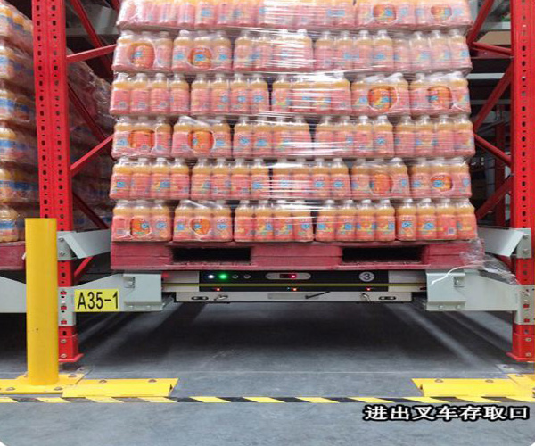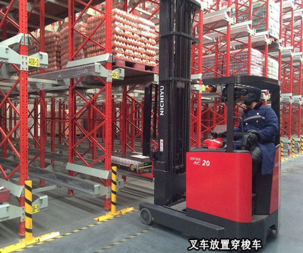 穿梭式貨架是穿梭板結(jié)合人工叉車一起操作使用,把貨物的存放和運輸分開,通過無線遙控穿梭車完成貨物的存取功能;人工叉車完成貨物運輸功能。叉車不進(jìn)入貨物存放區(qū),只在存儲區(qū)端頭作業(yè),靠穿梭車將貨物放入指定貨位。貨物存放指令由叉車操作員通過無線遙控器下發(fā),操作員也可終止無線遙控穿梭車正在執(zhí)行的動作。貨架端頭的第一貨位就是叉車取放貨物的位置,可實現(xiàn)貨物的先進(jìn)后出兩種作業(yè)模式。