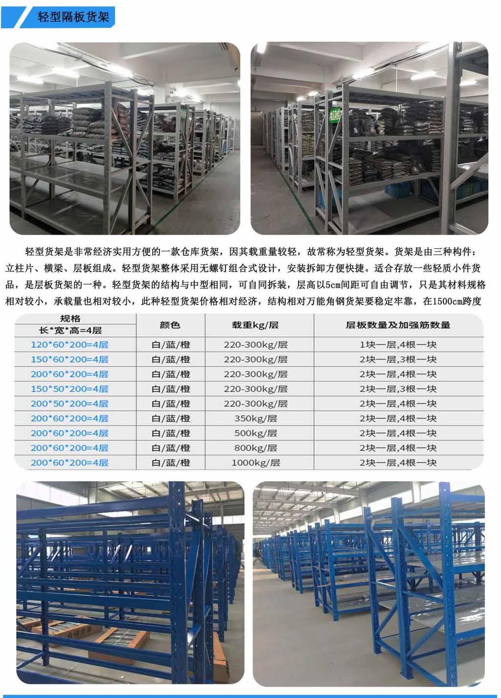 放一些輕質(zhì)小件貨品,是層板貨架的一種。
