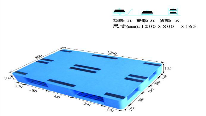 單面塑料托盤只能一面使用,表面有網格狀和平板狀兩種,底部有川字型、田字型、九腳型。