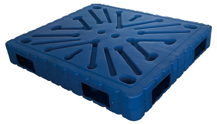 單面塑料托盤只能一面使用,表面有網(wǎng)格狀和平板狀兩種,底部有川字型、田字型、九腳型。